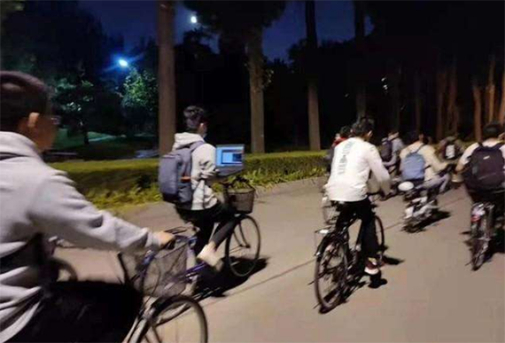 一开始,有大学生在网上传了一些照片,在清华北大校园里,有的人骑在自行车上看书、有的人边骑车边端着电脑写论文、有的人宿舍堆满了书……