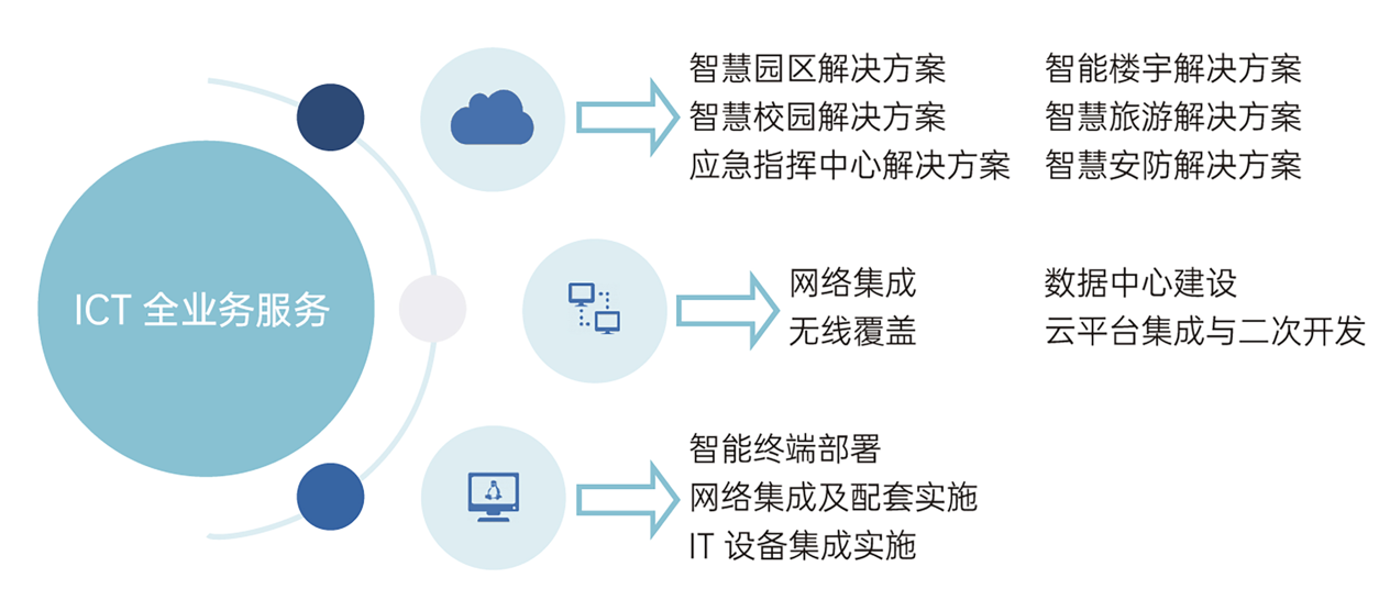 具备全业务集成能力,为行业客户提供咨询、解决方案和交付服务。